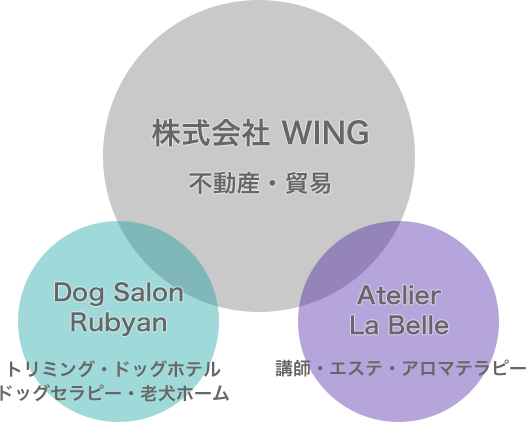 | 事業概要 | 貿易事業 不動産事業 ドッグサロン エステサロン |